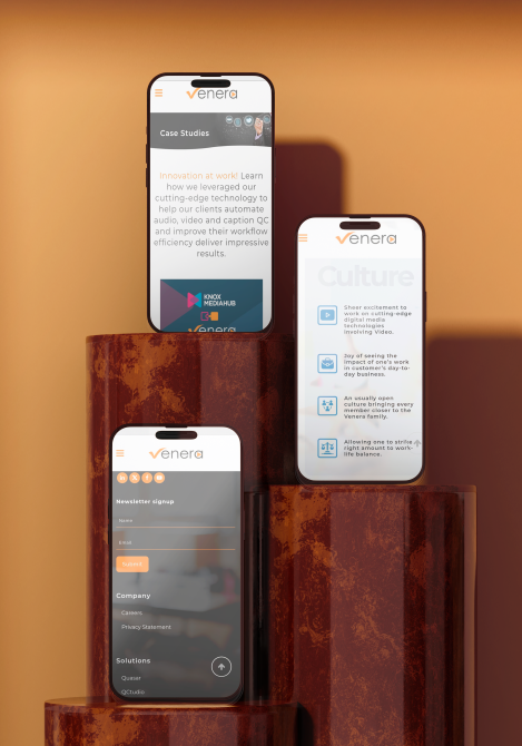 Venera operates in a world where precision is non negotiable. Trusted by Disney, HBO, and Amazon, the company automates QC for more than fifty thousand hours of video every week. Their engineering was world class, but their website did not communicate that clarity or confidence. What Venera needed was not cosmetic redesign. It needed a digital identity that matched the intelligence of its products.